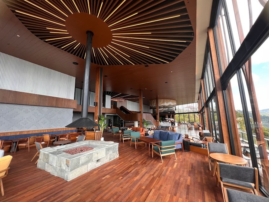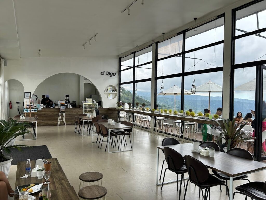 Most seating is indoors, ideal for cold or rainy days. Large glass windows let you enjoy the view even when mist covers the mountain. The cafe often hosts live music on weekends, so book early if you want the best spot.